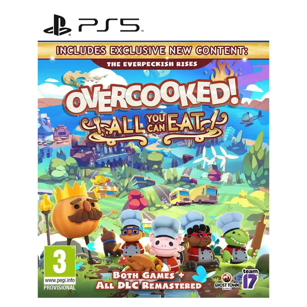 Overcooked! All You Can Eat for Playstation 5 Features: Overcooked! Goes Online - For the first time ever, online multiplayer has been fully integrated into Overcooked! Revisit your favourite kitchens...