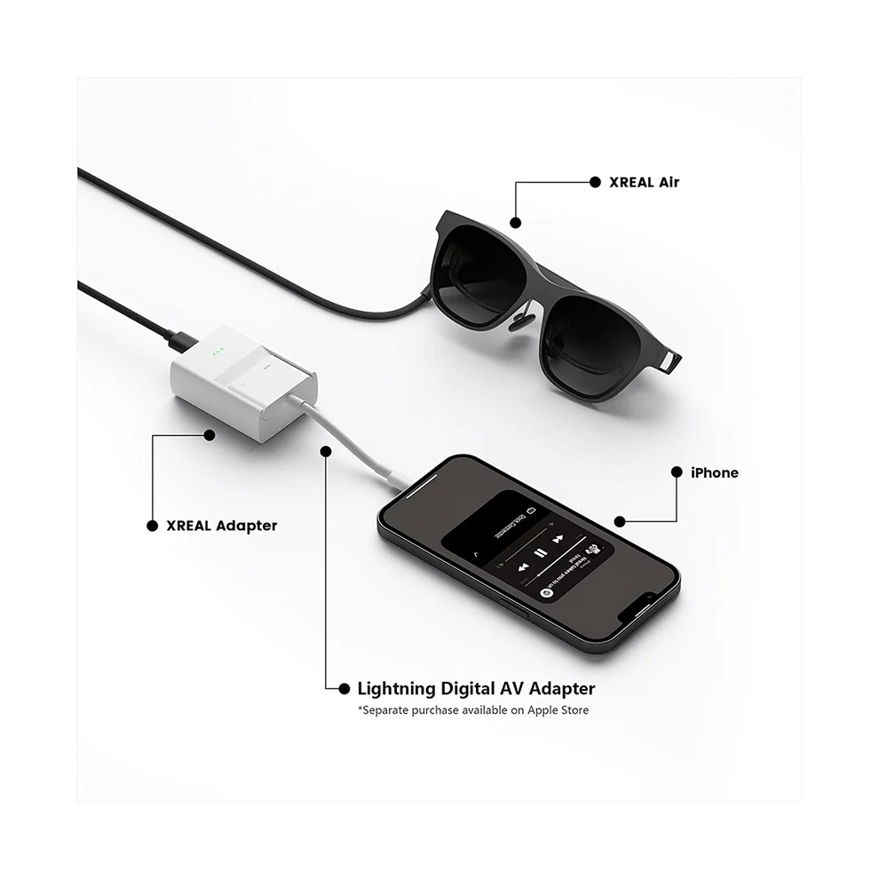 XREAL Adapter Designed for compatibility with the official Apple Lightning Digital AV Adapter which must be purchased separately. Please be sure to update XREAL Air, Air 2 and XREAL Adapter to the latest firmware...